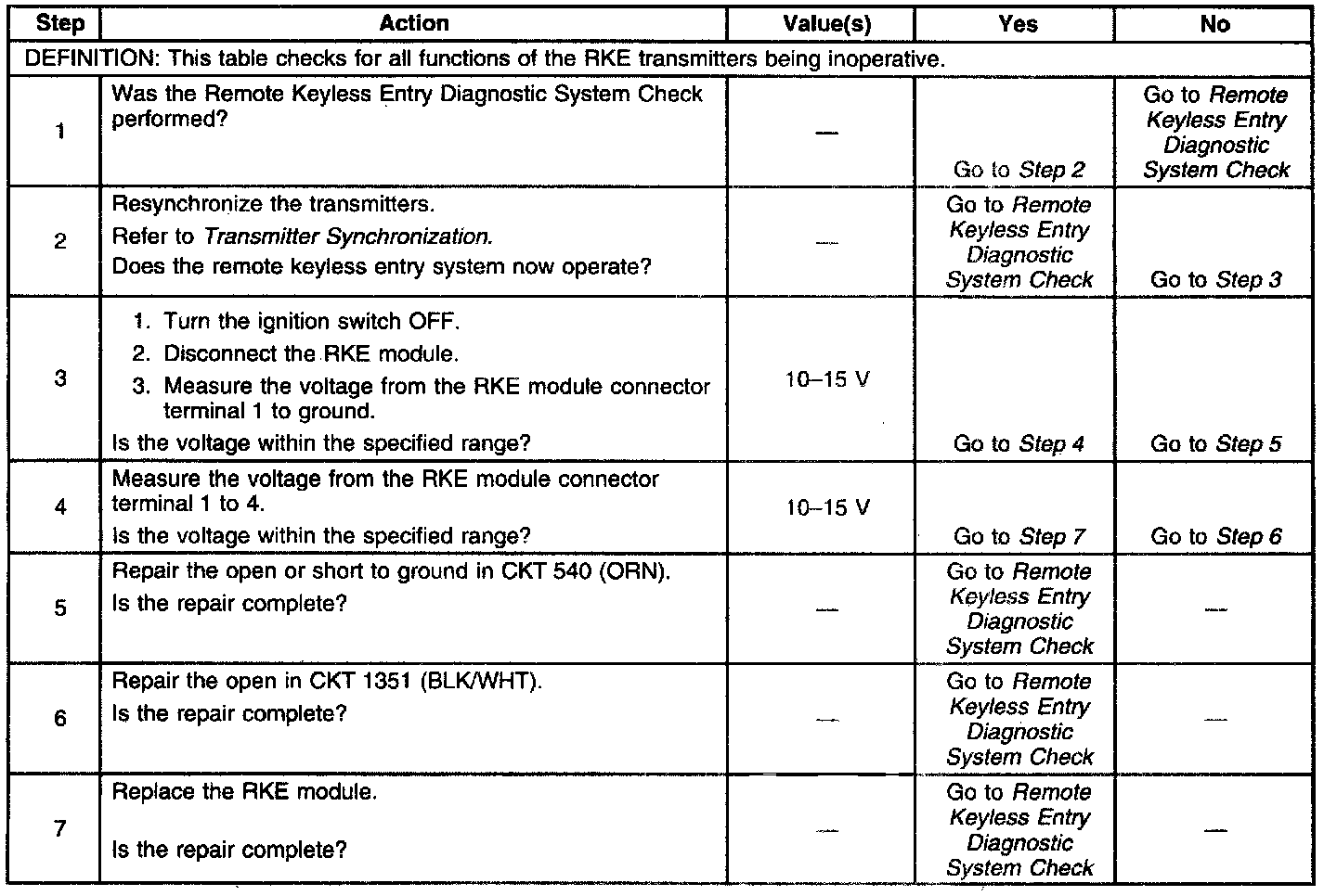 Remote Keyless Entry System Inoperative: