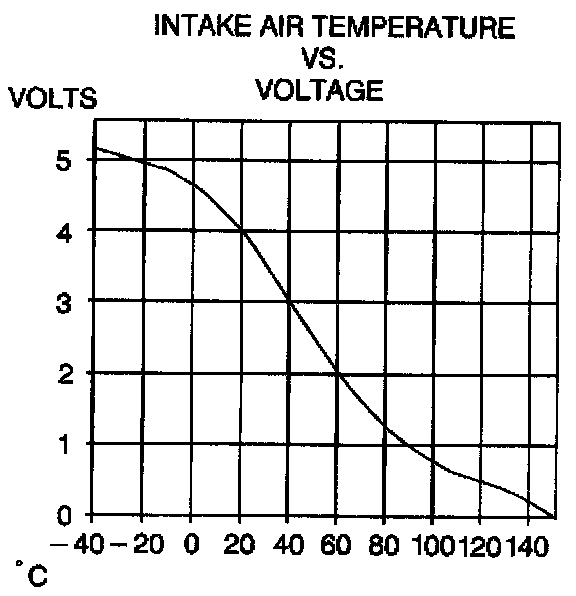 High air temperatures result in low resistance and low air temperatures result in high resistance. The PCM provides a 5 volt reference signal and a ground to the IAT sensor. The PCM measures the voltage changes in the signal due to the sensors resistance. A high air temperature will result in low signal voltage (near 0 volt) to the PCM and low air temperature will result in high signal voltage (near 5 volt).