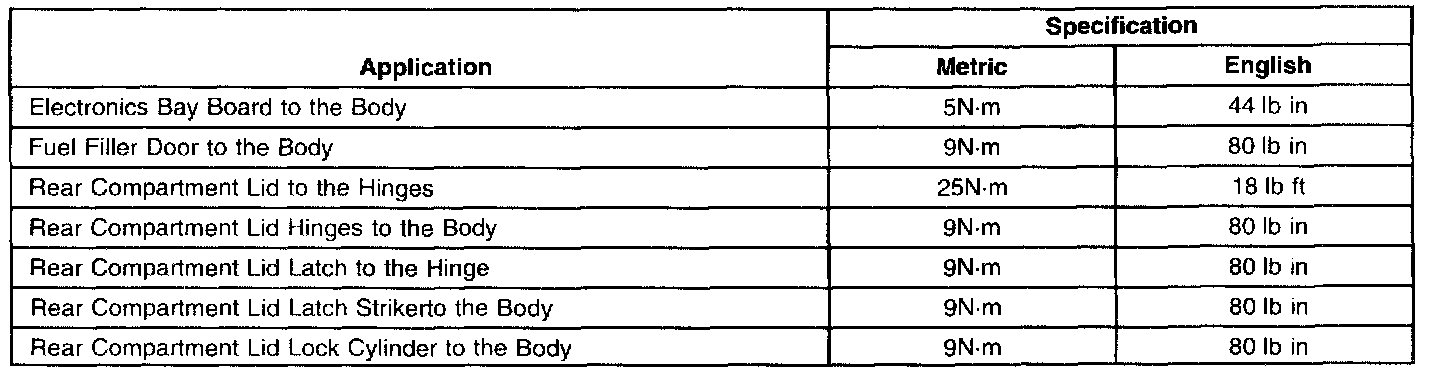 Fastener Tightening Specifications: