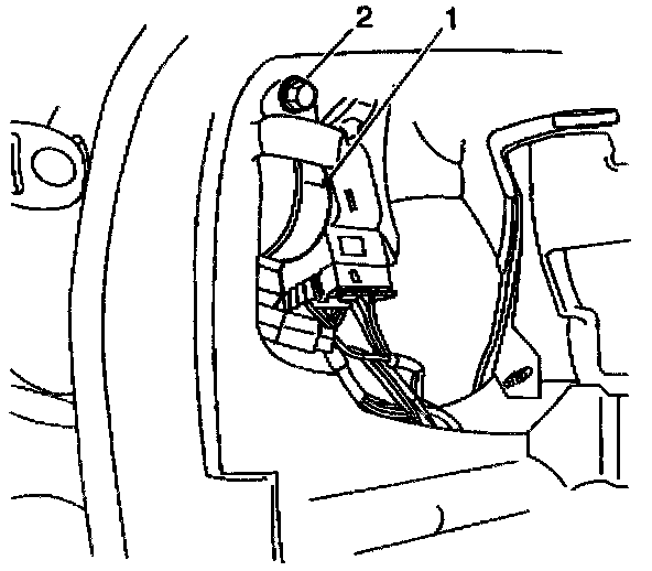 4. Look through radio opening in IP and locate the release button (1) on the side of the switch