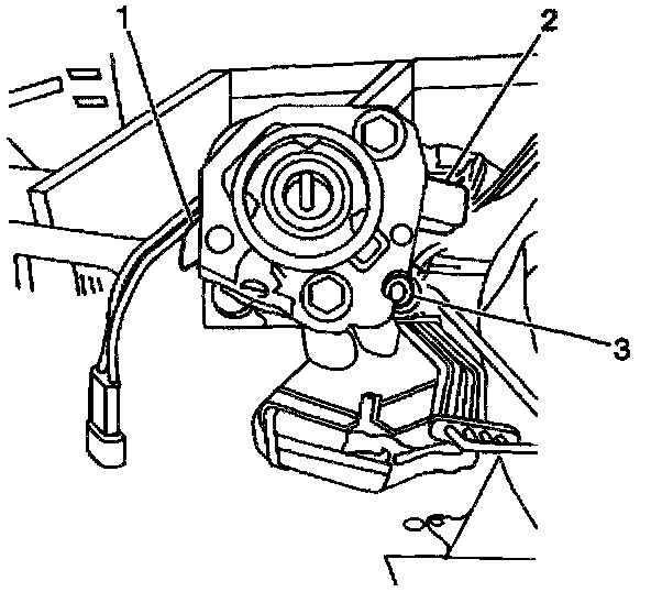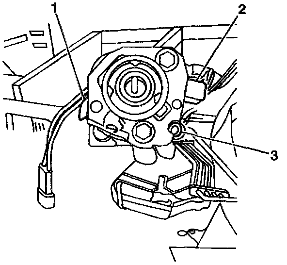 13. Remove the fasteners (1 through 3) securing the ignition switch bracket to the switch.