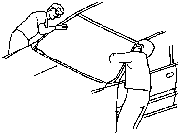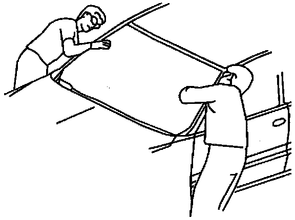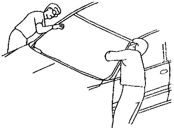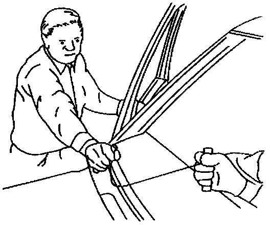 ^ Lower the door windows partially to prevent pressure build up when closing the doors prior to the urethane adhesive curing.