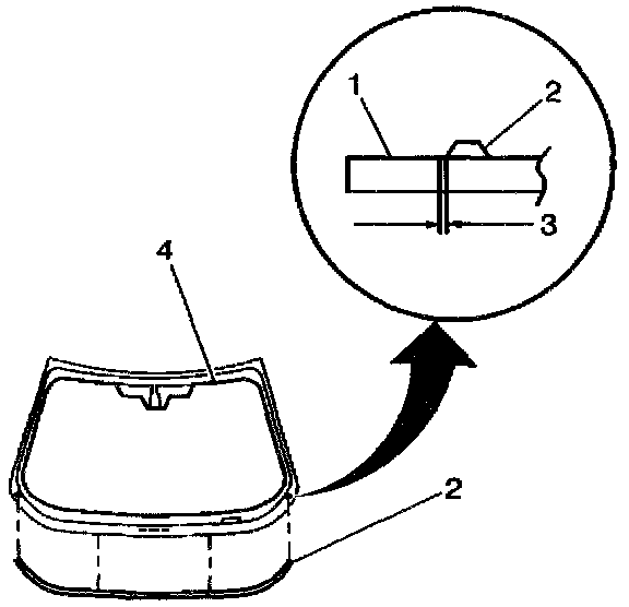 3. Install the acoustic strip (2) with a 2 mm or less gap (3) to the dashed line (1) painted on the windshield.