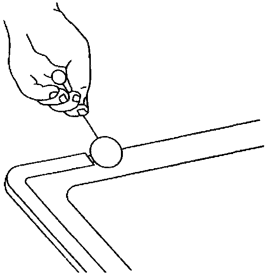 6. After repairing the window opening as indicated, shake the pinchweld primer #3 (black) well d using a new dauber, apply the primer to the bonding area of the pinchweld. Allow to dry for 10 minutes.