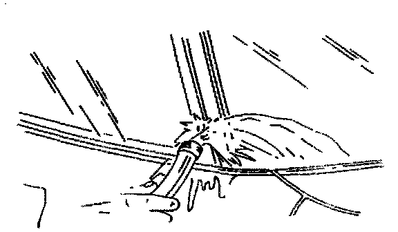 2. Cut the outer lip of the upper reveal molding off with a urethane razor knife or equivalent to allow access to the body pinchweld.