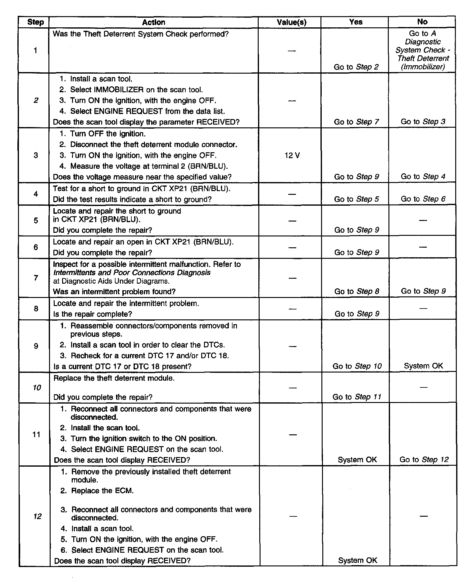 The number(s) below refer to the step number(s) on the diagnostic table.