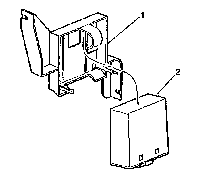 1. Slide the module (2) up into the bracket (1) until the bottom clears the bracket and sits flush within the bracket.