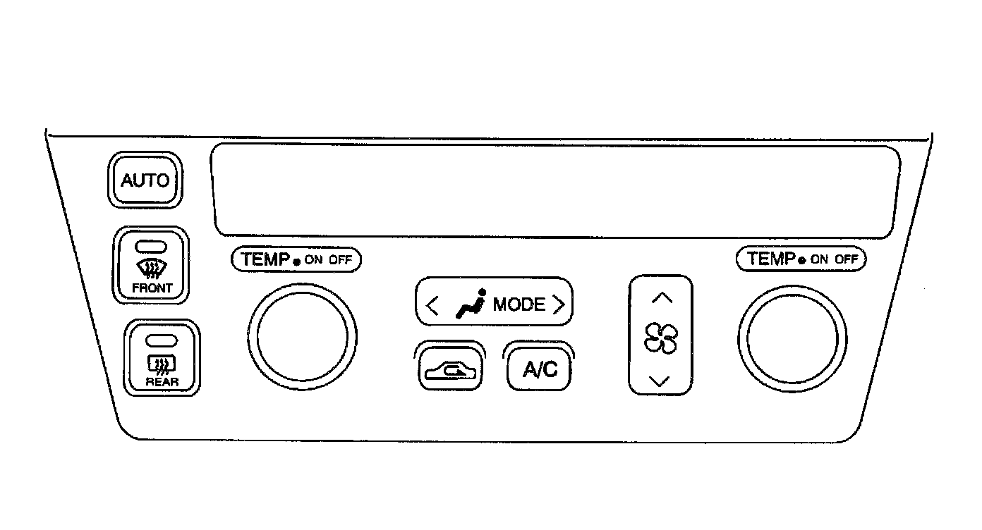 The heater and A/C control assembly allows the vehicle operator to communicate with the Instrument Panel Integration Module (IPM). The IPM is an integrated component of the heater and A/C control assembly. The IPM is the component which monitors the HVAC system status and can adjust to meet the requirement set by the operator of the vehicle. The heater and A/C control includes buttons to select operating modes, a fan speed increase/decrease switch, the rear defog control button, and a vacuum fluorescent display panel. When the parklamps or headlamps are turned on, the buttons are illuminated. The temperature for the driver and passenger is controlled individually by two separate knobs.