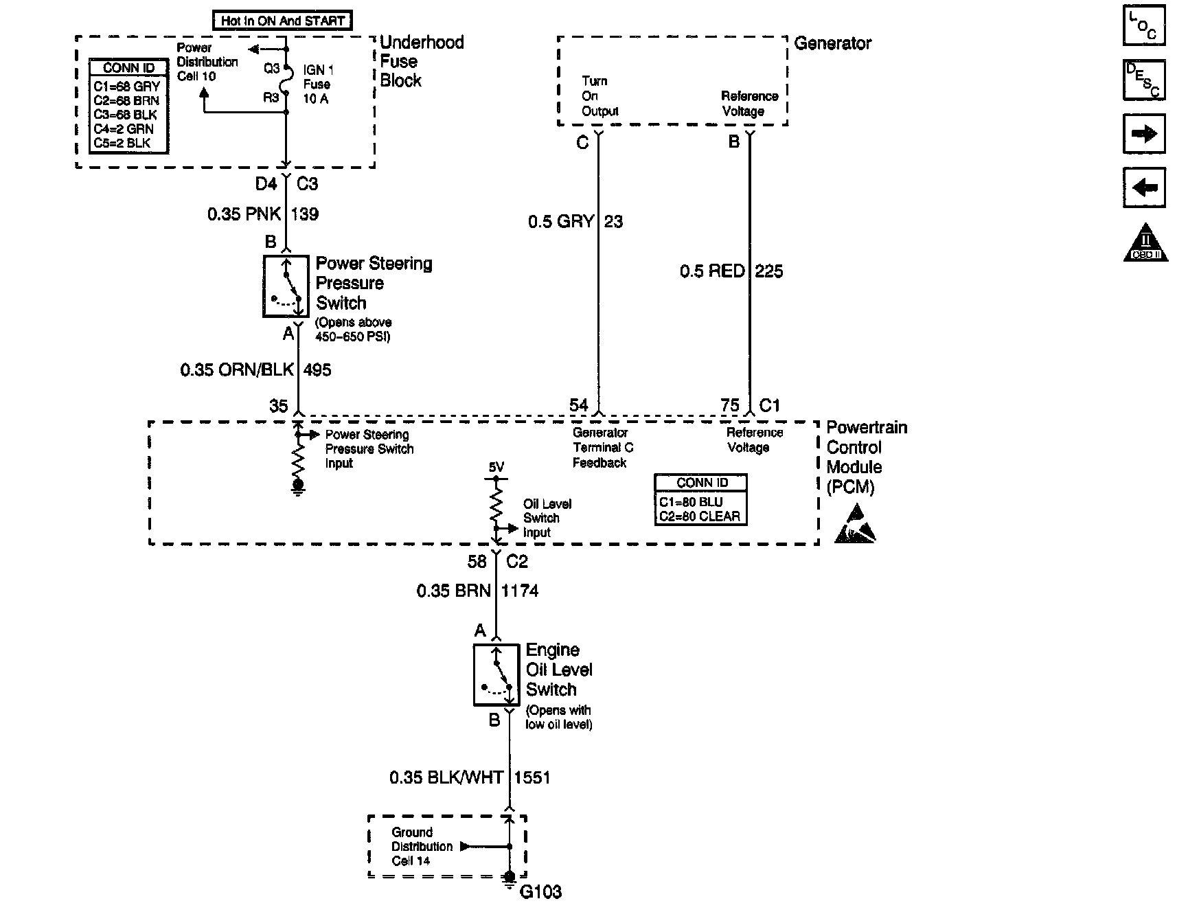 Generator, Power Steering Pressure Switch and Oil Level Switch