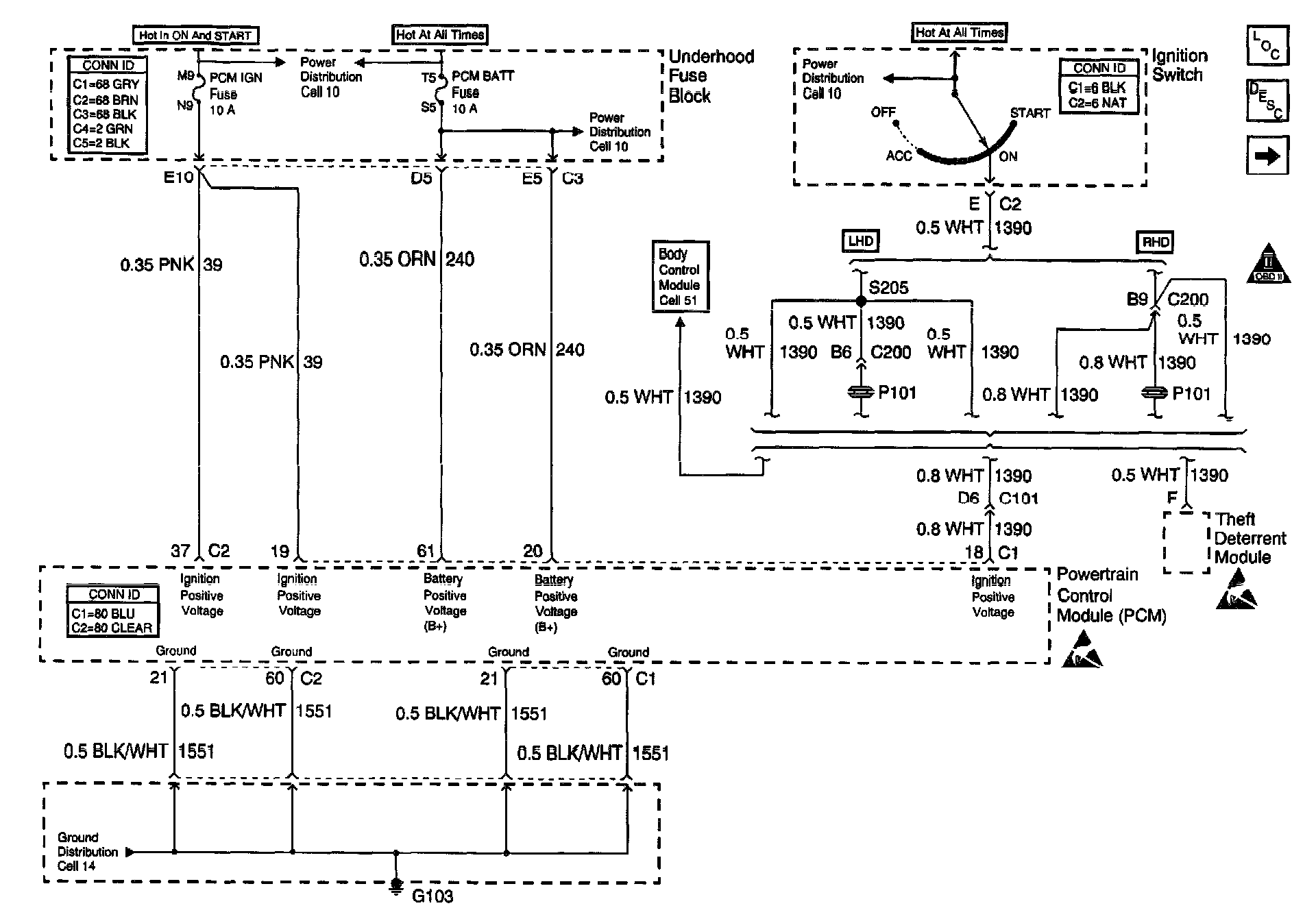 Automatic Transmission Controls Schematics (Cell 39: PCM Power and Grounds)
