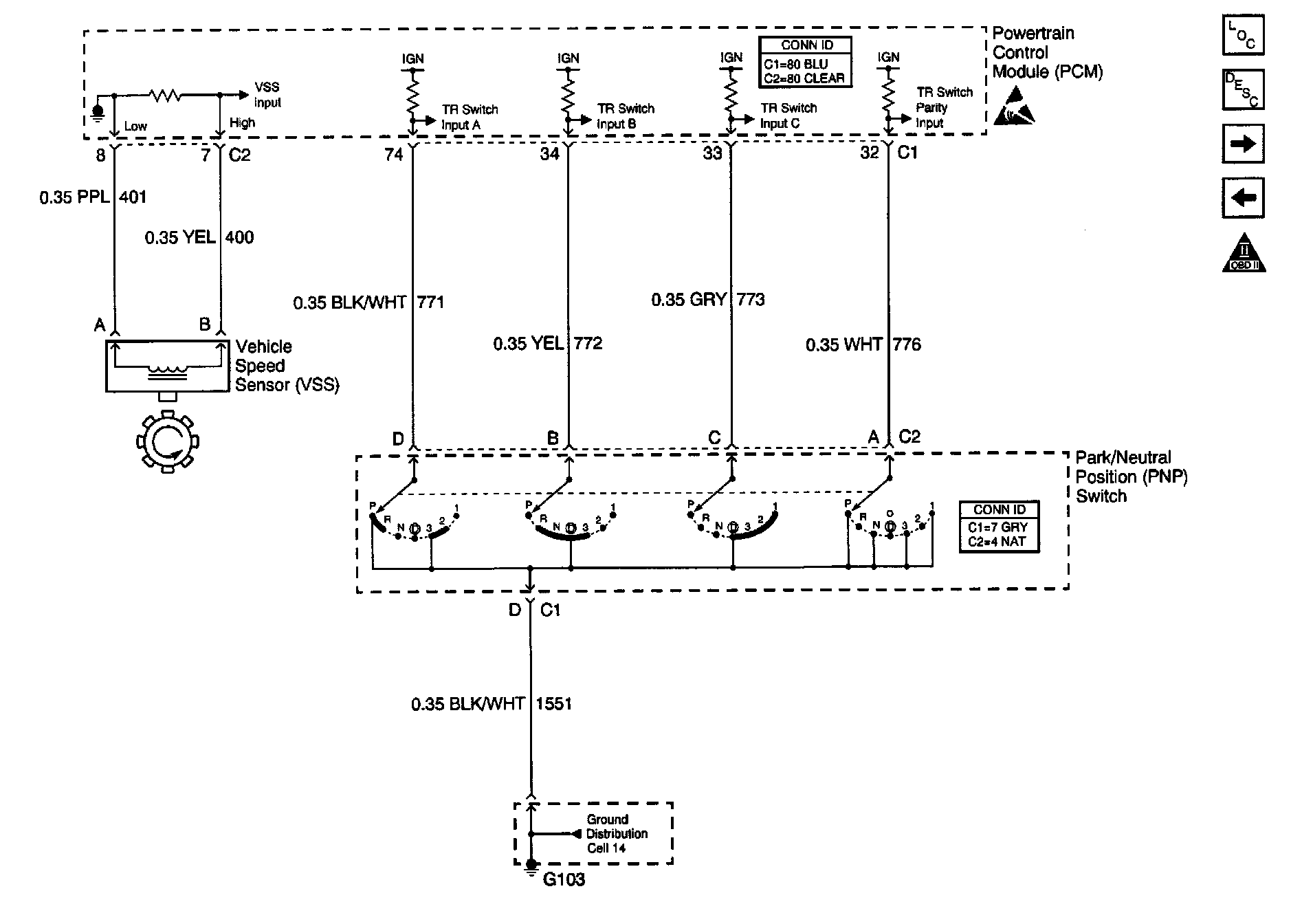 Automatic Transmission Controls Schematics (Cell 39: Park/Neutral Position (PNP) Switch and VSS)