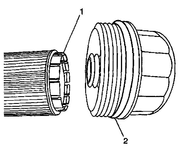 Important: Ensure the tabs (1) on the oil filter cartridge lock firmly into the plastic cap.