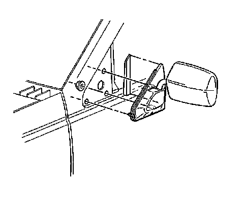 3. Remove the nut securing the outside rearview mirror to the door.