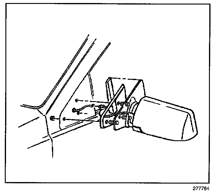 The insertion is complete when the mirror back trunnion nests in the motor pack trunnion area.