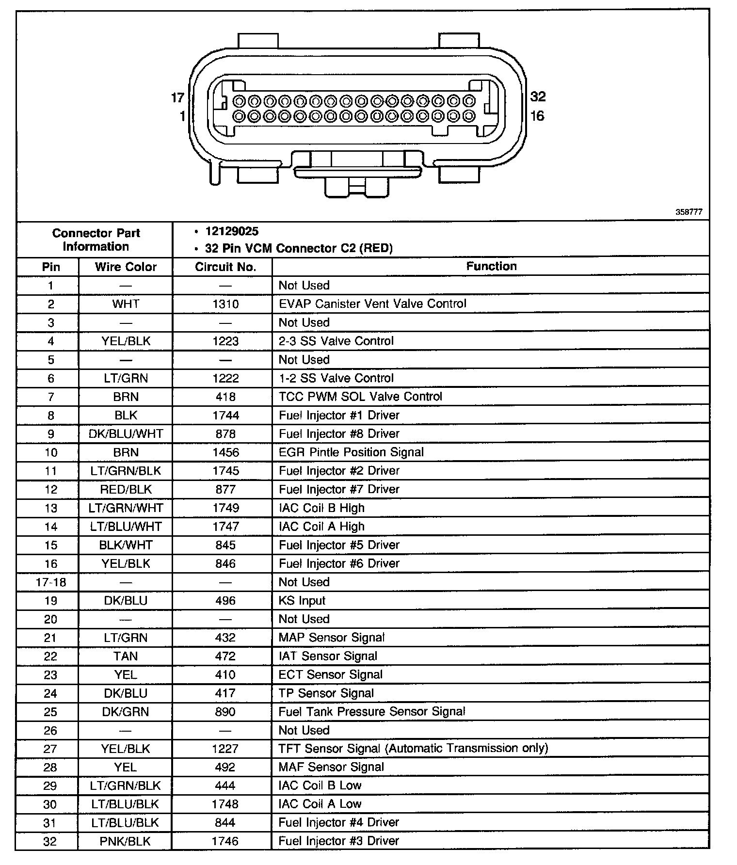 Vehicle Control Module (VCM) Connector C2: