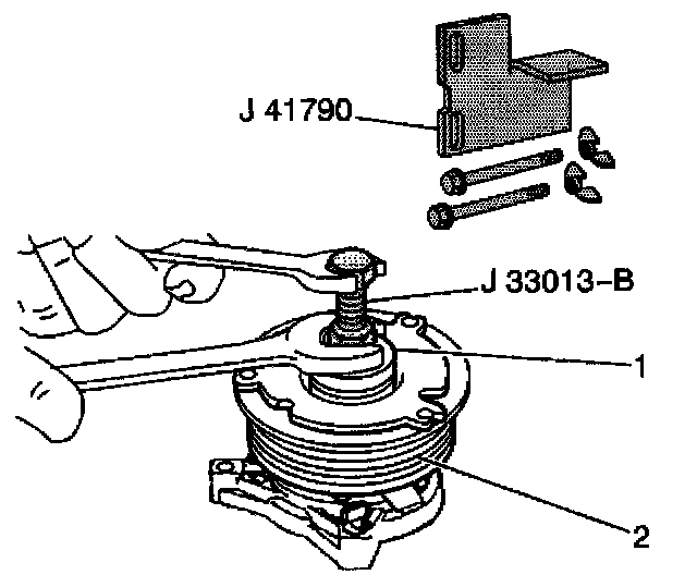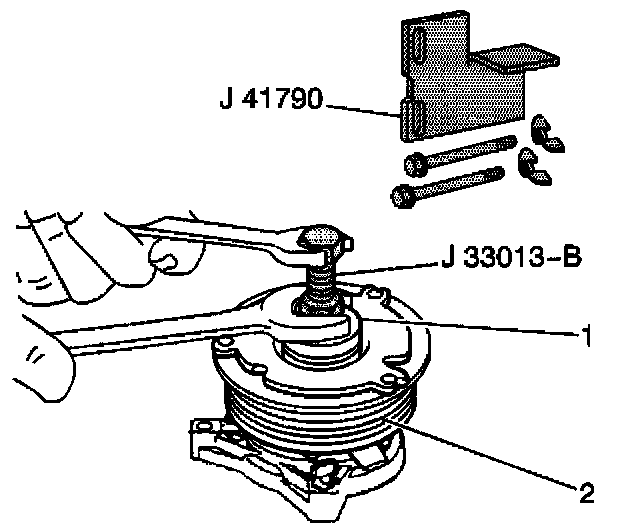 10. Tighten the hex portion of the J 33013-B body in order to press the hub (2) onto the shaft.