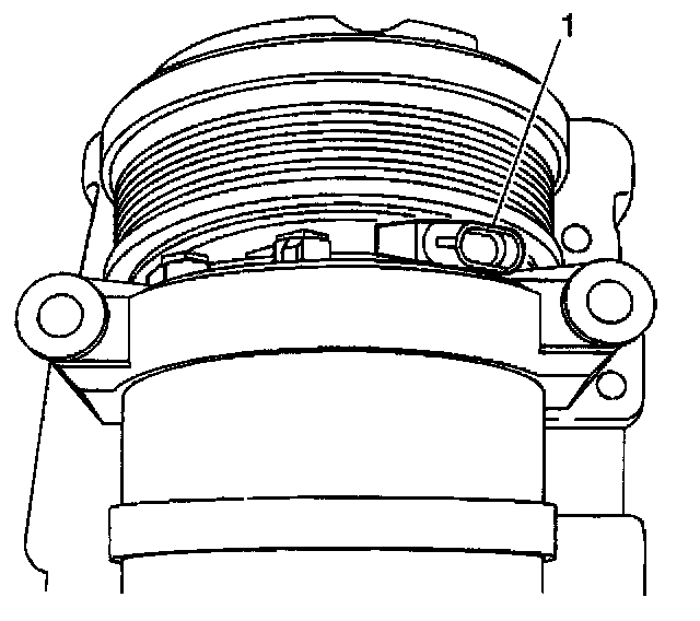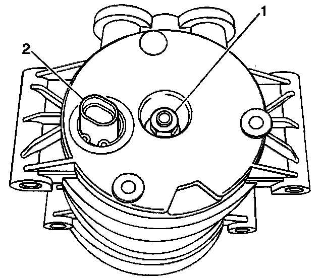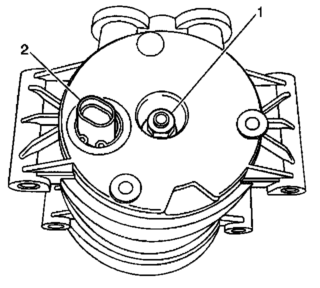 4. Disconnect the electrical connector (2) from the A/C compressor high pressure cutoff switch.