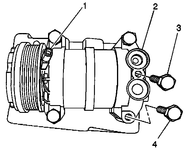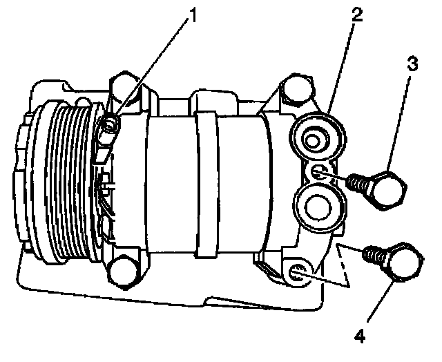 ^ Tighten the compressor bolts (4) to 50 N.m (37 lb ft).