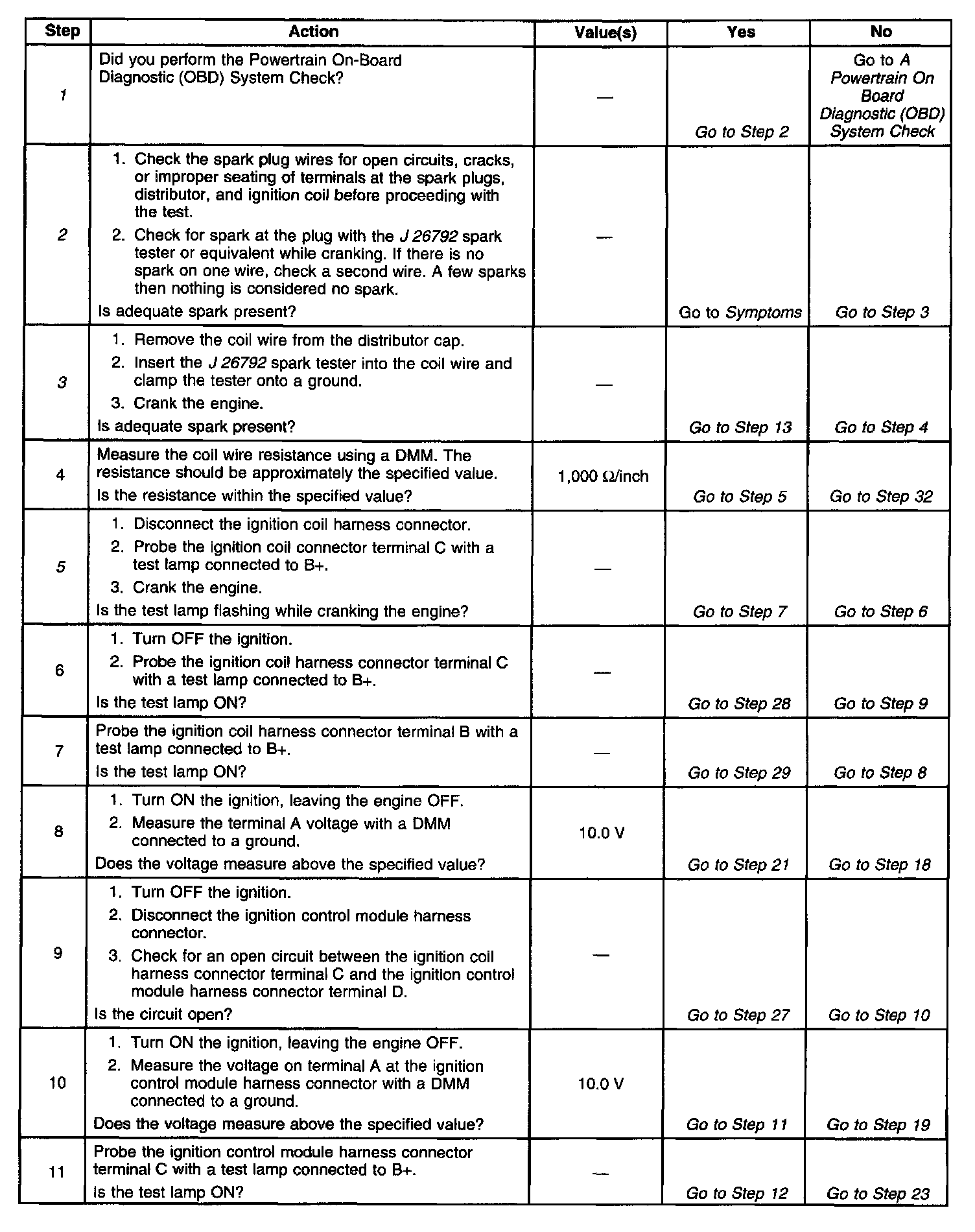 The numbers below refer to the step numbers in the diagnostic table.