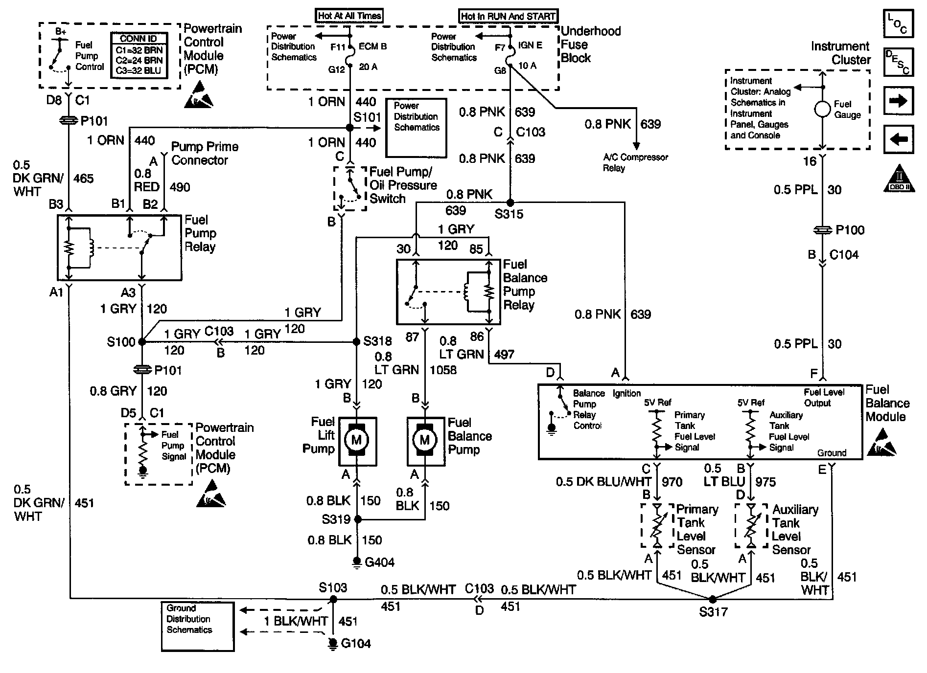 Engine Controls Schematics (Base Engine): Fuel Pump Controls - Dual Tanks:
