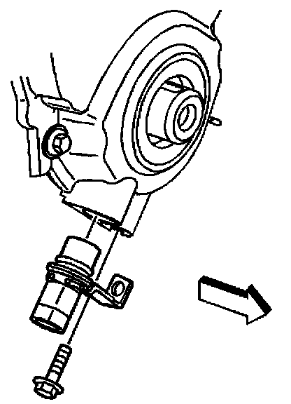 The Crankshaft Position Sensor (CKP) is located in the front engine cover and is perpendicular to the crankshaft target wheel. The air gap between the sensor and the wheel is preset and not adjustable. The target wheel has 4 slots 60 degrees apart and is keyed to the crankshaft. As the target wheel rotates, the slots passing by the sensor create a change in the magnetic field of the sensor which results in an induced voltage pulse. One revolution of the crankshaft results in four pulses (4x signal). Based on these pulses, the VCM is able to determine crankshaft position and engine speed. The VCM then activates the fuel injector and provides a spark to the distributor. The relation between the crankshaft position sensor and the target wheel is crucial. The sensor must be exactly perpendicular to the target wheel with the correct air gap.