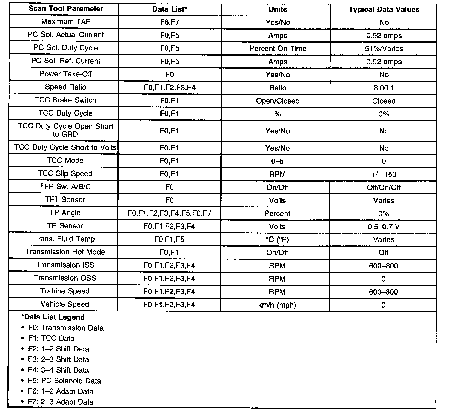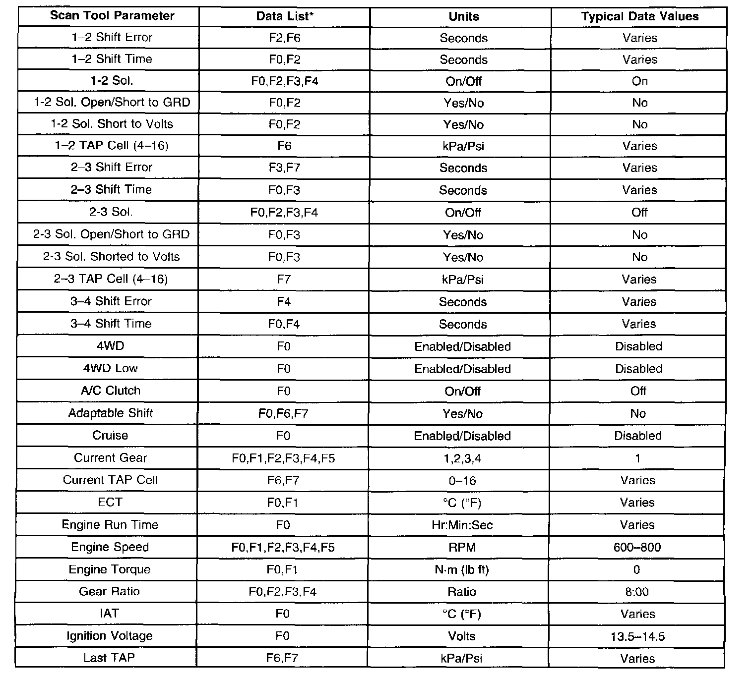 Only the parameters listed below are used in this manual for diagnosing. If a scan tool displays other parameters, the values are not recommended by General Motors for use in diagnosis.