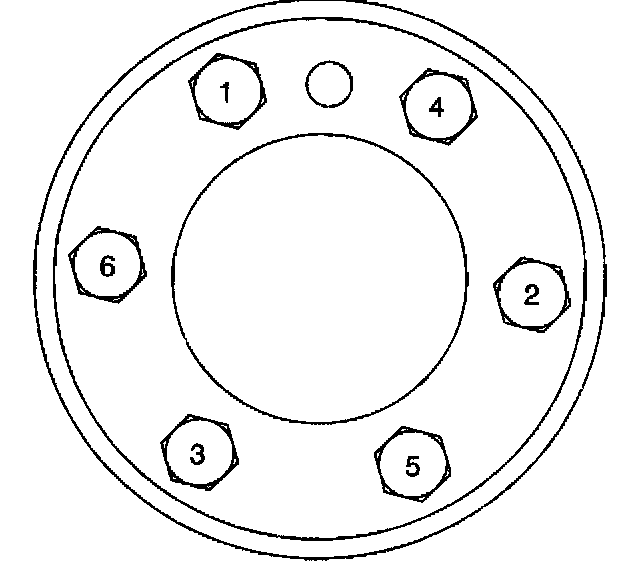 Tighten the engine flywheel bolts in sequence (1-8) to