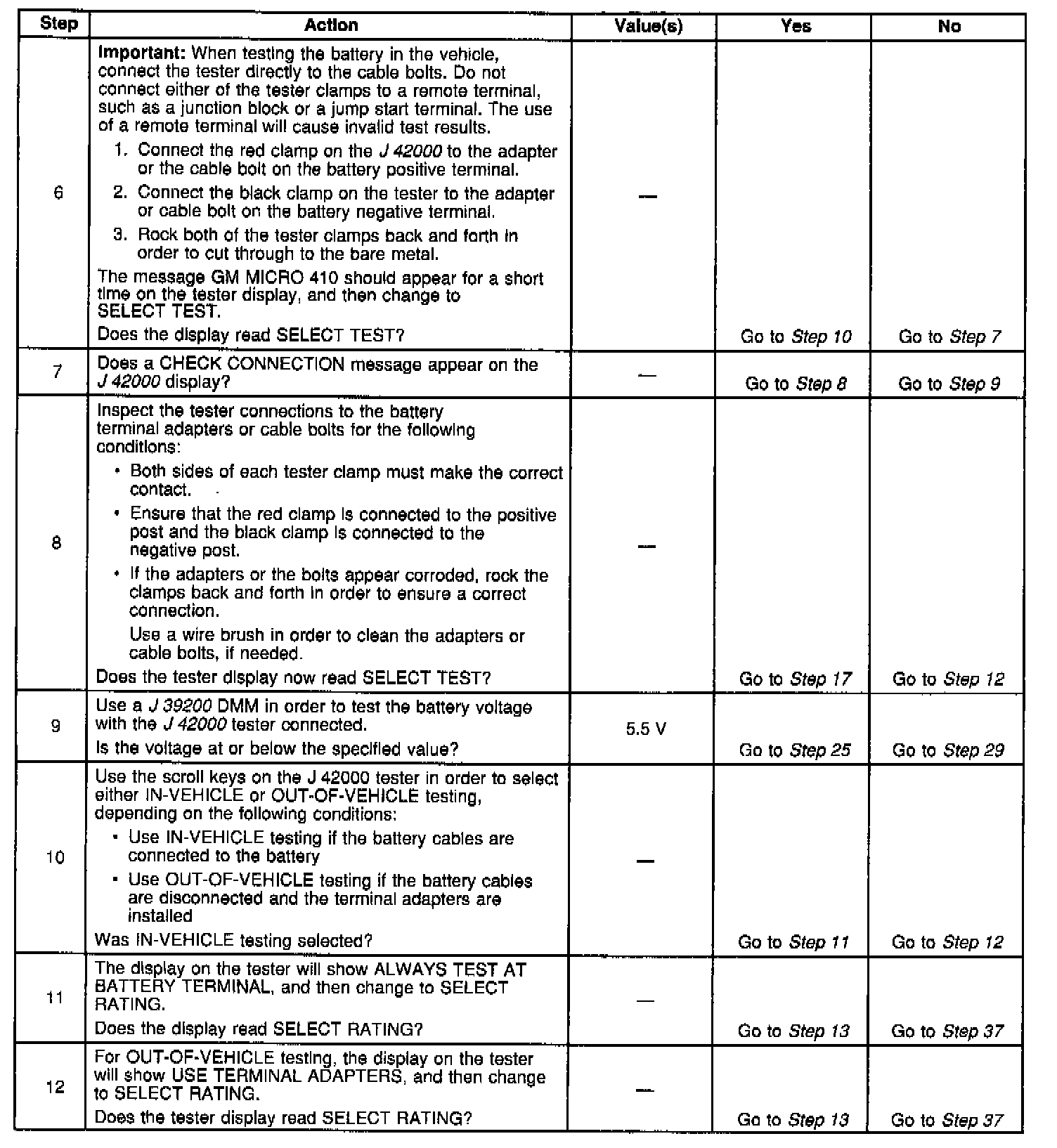 Use the test adapters that are provided with the J 42000 tester or GM part number 12303040 terminal adapters. If the adapters that are provided with the J 42000 tester require replacement, only use adapters with the GM part number 12303040. Any other adapters may not contact the correct areas of the battery terminal, causing resistance that may result in an invalid battery test result.