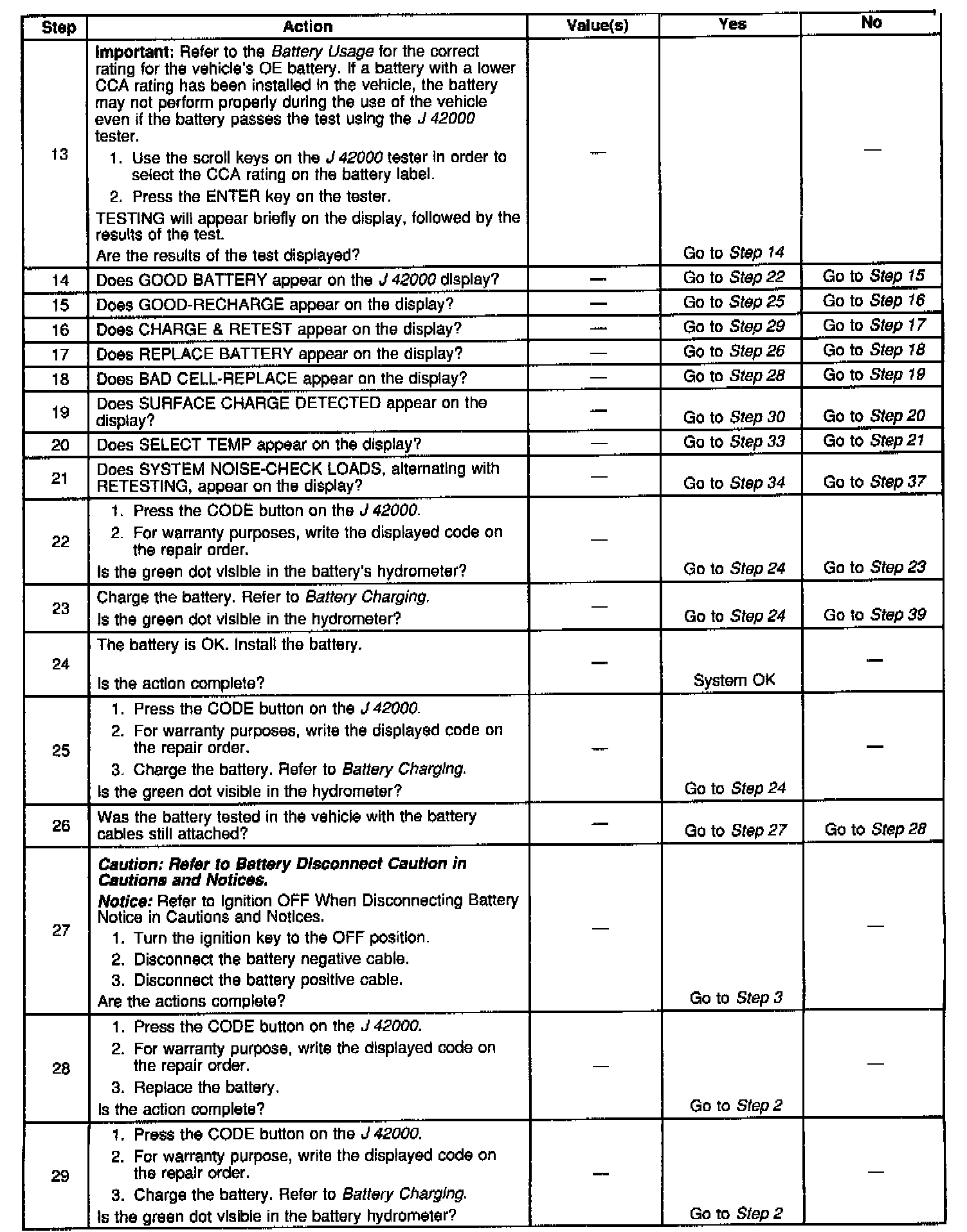 IMPORTANT: The battery test using the J 42000 Battery Tester requires correct connections to the battery terminals. A failure to obtain the correct connections during the test may result in replacing the battery unnecessarily. Adhere to the following instructions in order to avoid an incorrect diagnosis due to poor connections: