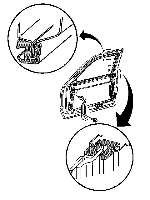 2. Align the inner panel lower front corner bolt with the hole in the front glass channel assembly.