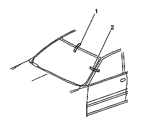 13. Use masking tape (1,2) in order to mark the location of the windshield in the opening.