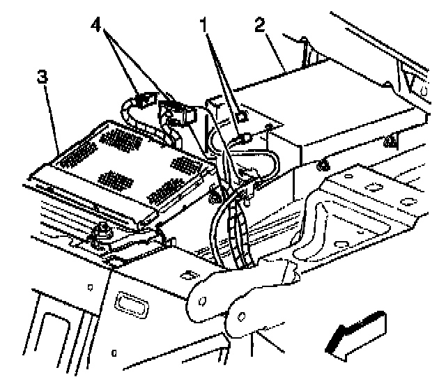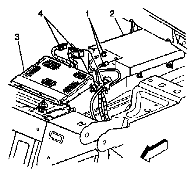 5. Reconnect the navigation data processor electrical connectors (1,4).