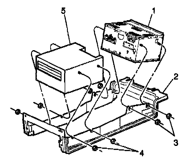 7. Remove the navigation data processor (5) from the navigation data processor/radio bracket (2).