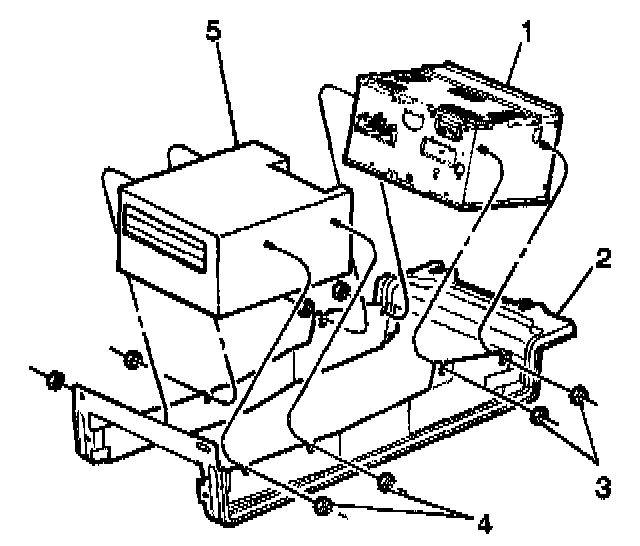 6. Remove the fasteners (4) retaining the navigation data processor (5) to the navigation data processor/radio bracket (2).