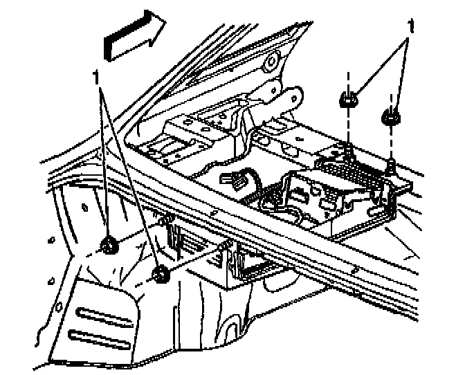 4. Remove the fasteners (1) retaining the navigation data processor/radio bracket to the rear shelf.