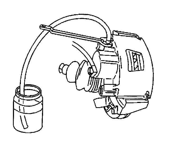 7. Attach a transparent tube to the bleeder valve; submerge the other end of the tube in a clear container, partially filled with clean brake fluid.