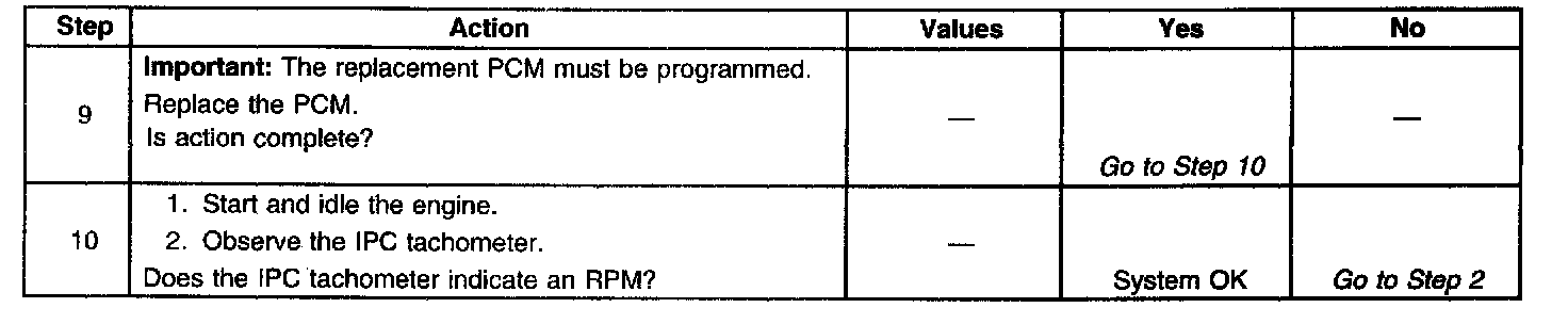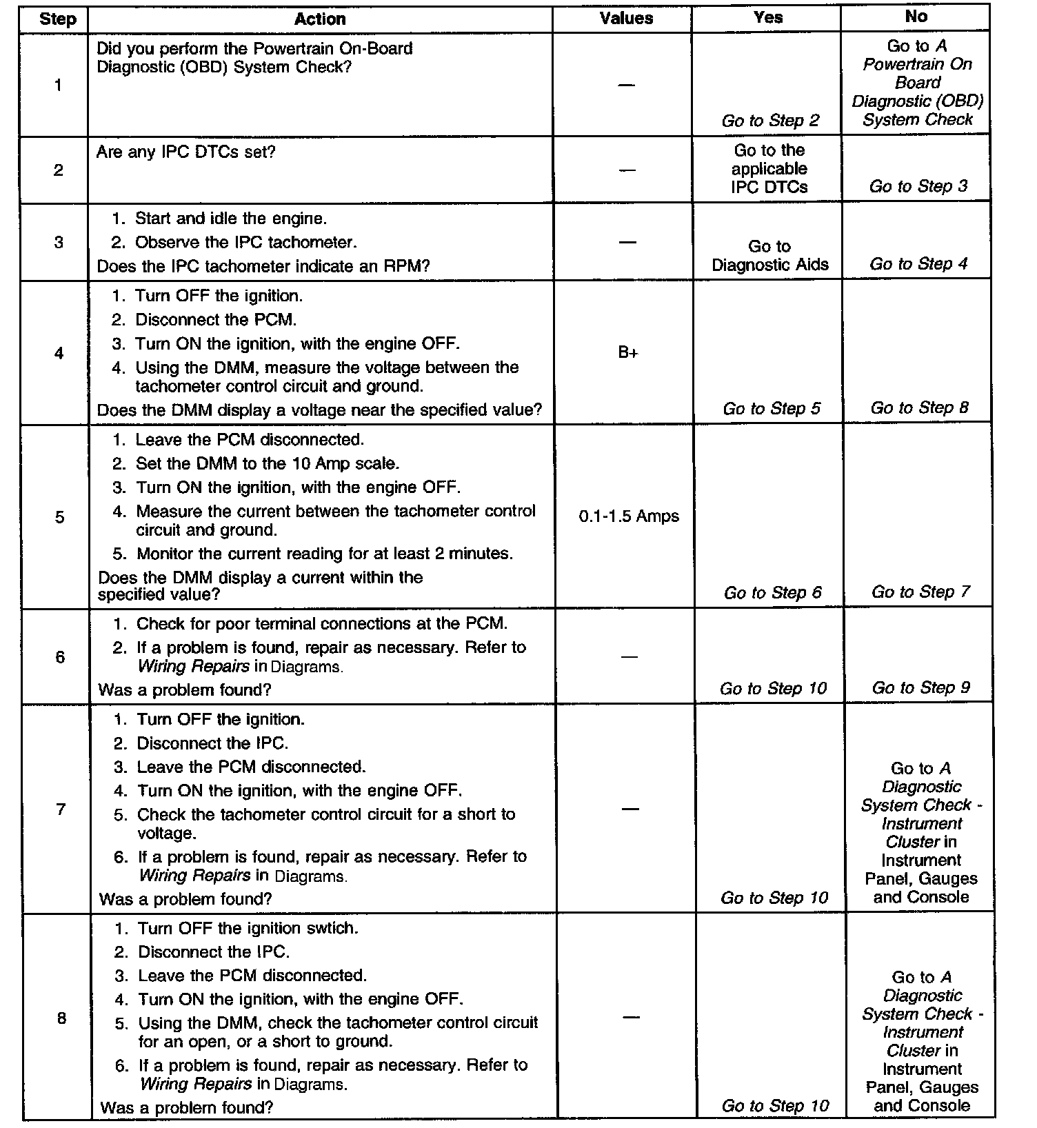 The tachometer signal is a Pulse Width Modulated (PWM) signal. The Instrument Panel Cluster (IPC) supplies ignition voltage to the tachometer control circuit through a pull-up resistor. The a low side driver in the PCM grounds the tachometer control circuit in relation to engine speed.