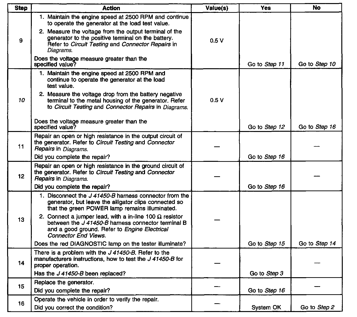 If the test has shown the generator to be OK, however the condition still remains, test the PCM or its control circuit to the generator.