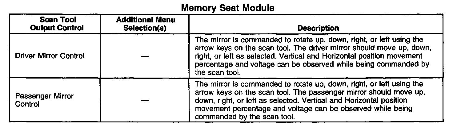 Scan Tool Output Controls - Memory Seat Module (MSM)