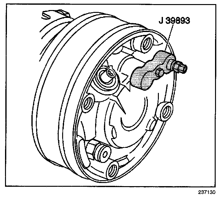 1. With the sealing washers in place, install the J 39893 on the rear head of the compressor.