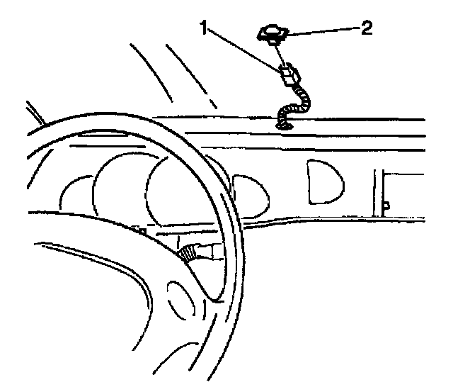 2. Press the sunload sensor (2) into the top of the dash panel.
