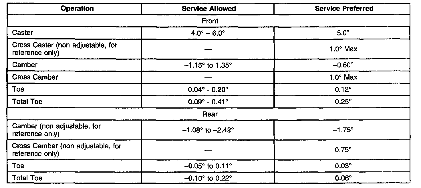 Wheel Alignment Specifications