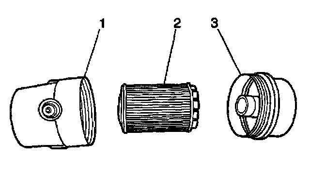 Important: Ensure the tabs (1) on the oil filter cartridge lock firmly into the plastic cap.