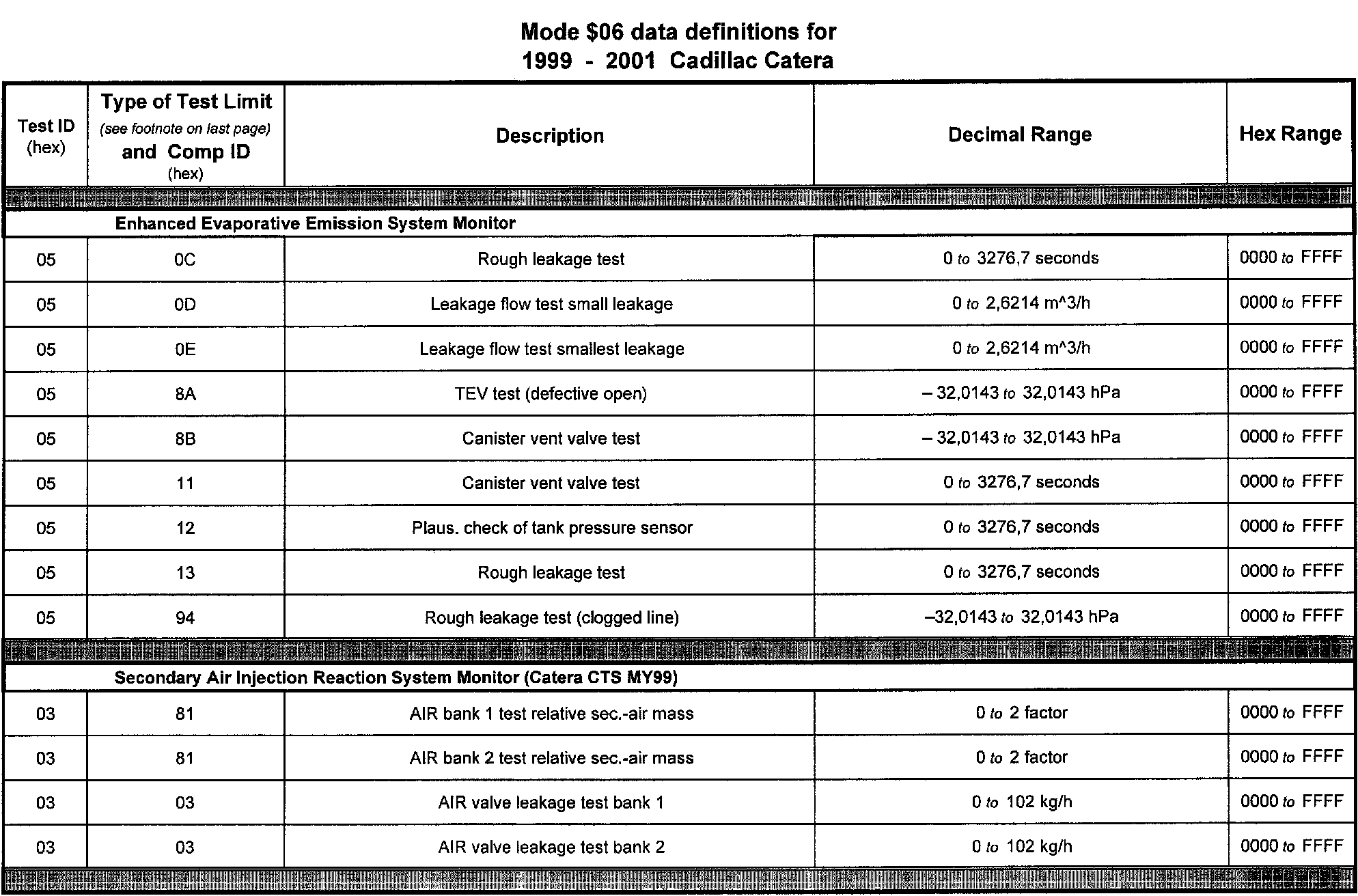 1999-2001 Cadillac Catera Mode 6 Description Page 2:
