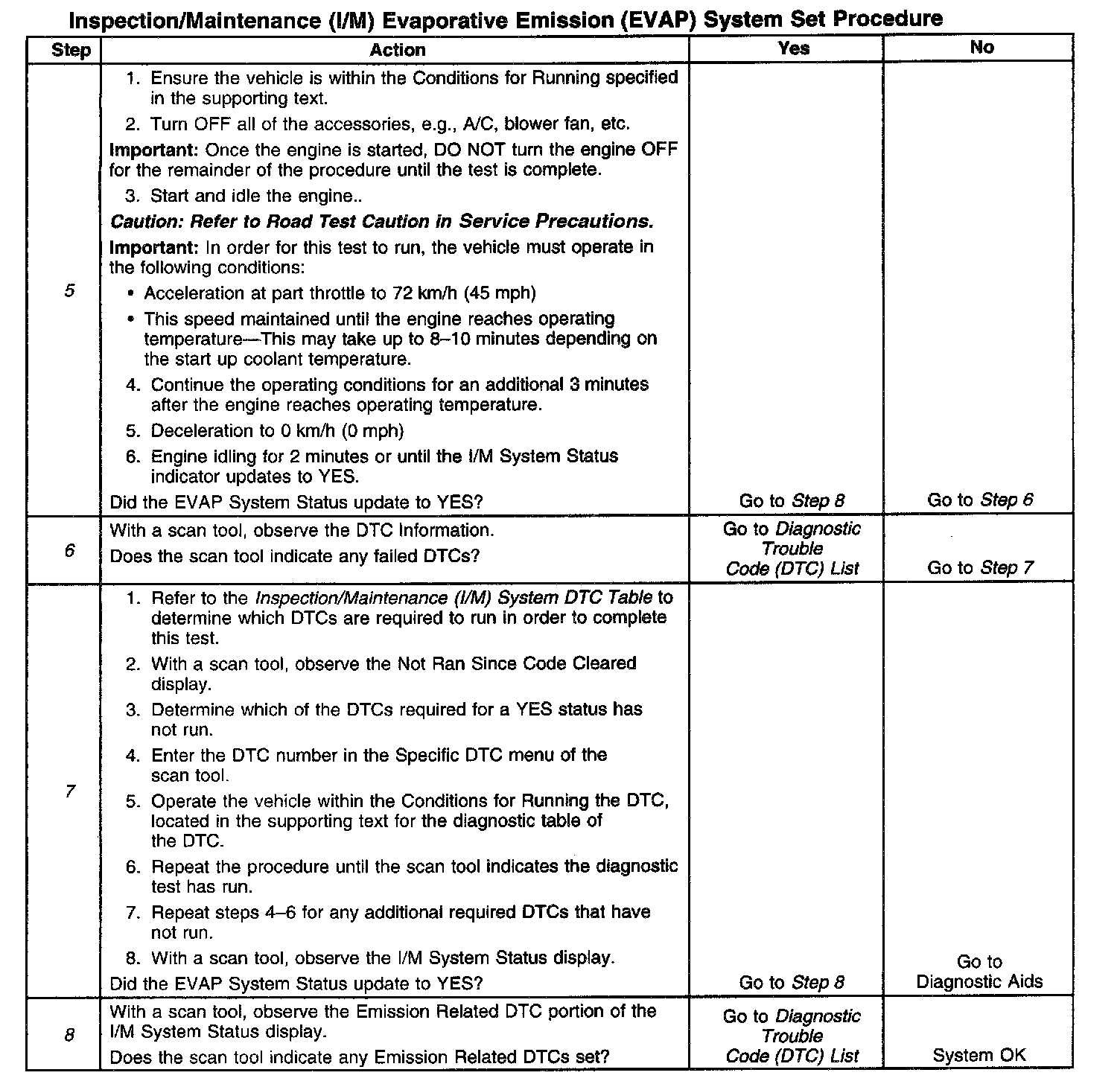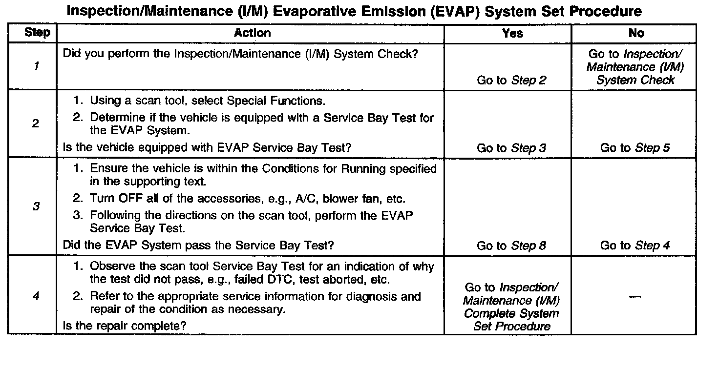 1. Make sure you perform the I/M system check before performing this test. Failure to do so may result in difficulty updating the status to YES. Inspection/Maintenance (I/M) System Check