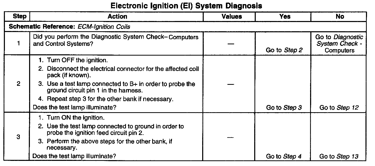 9. This step is to verify the operation of the ignition coil control circuit and the driver in the ECM.