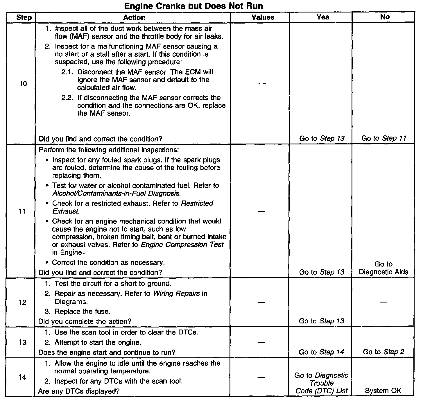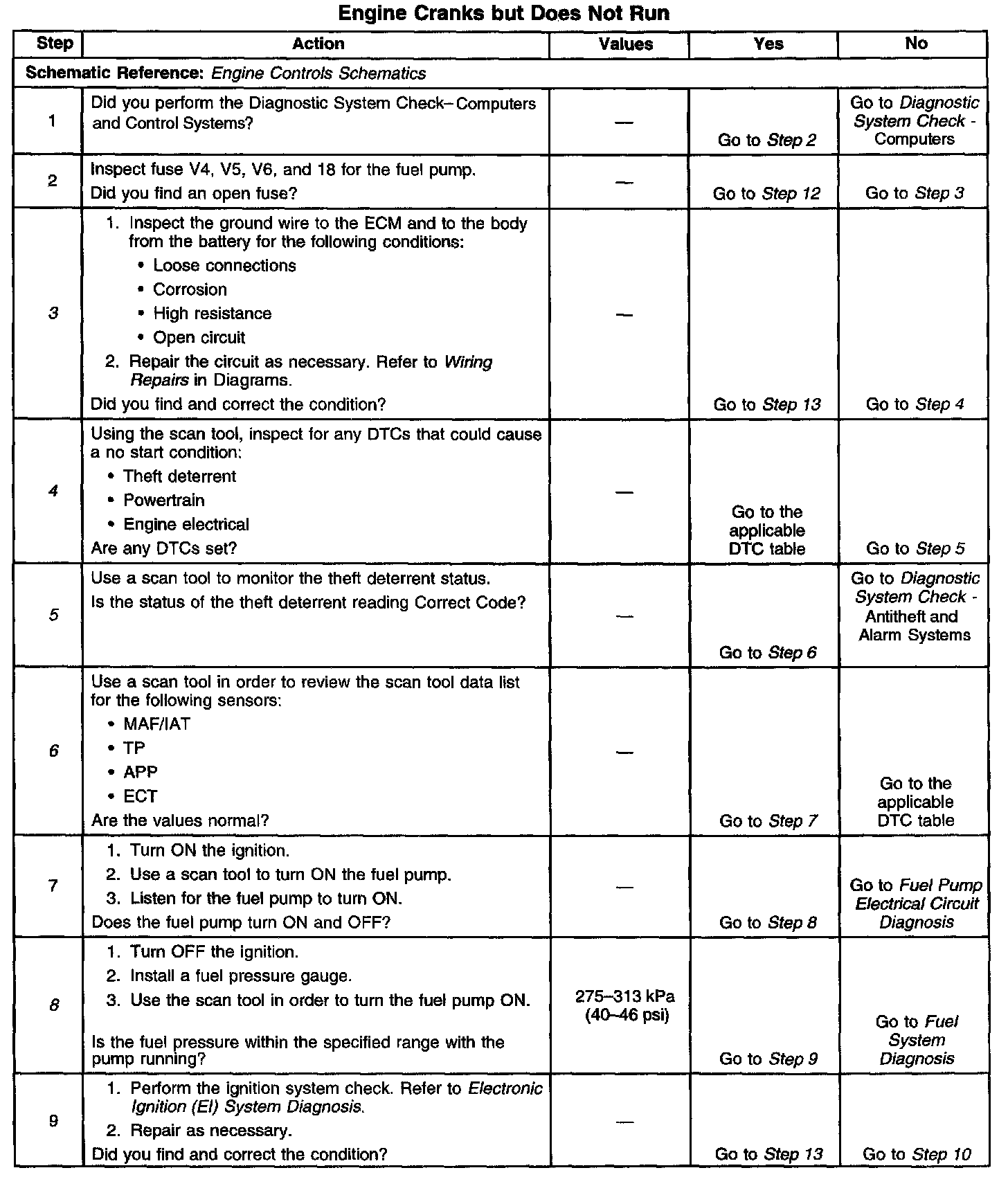 DESCRIPTIONThis table assumes that the battery condition and the engine cranking speed are OK. If not, refer to Diagnostic System Check - Starting and Charging for diagnosis. Make sure that there is adequate fuel in the tank.