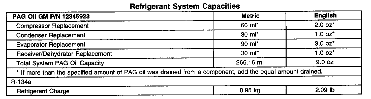 Refrigerant System Capacities: