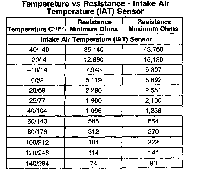 Temperature Vs Resistance - Intake Air Temperature (IAT) Sensor: