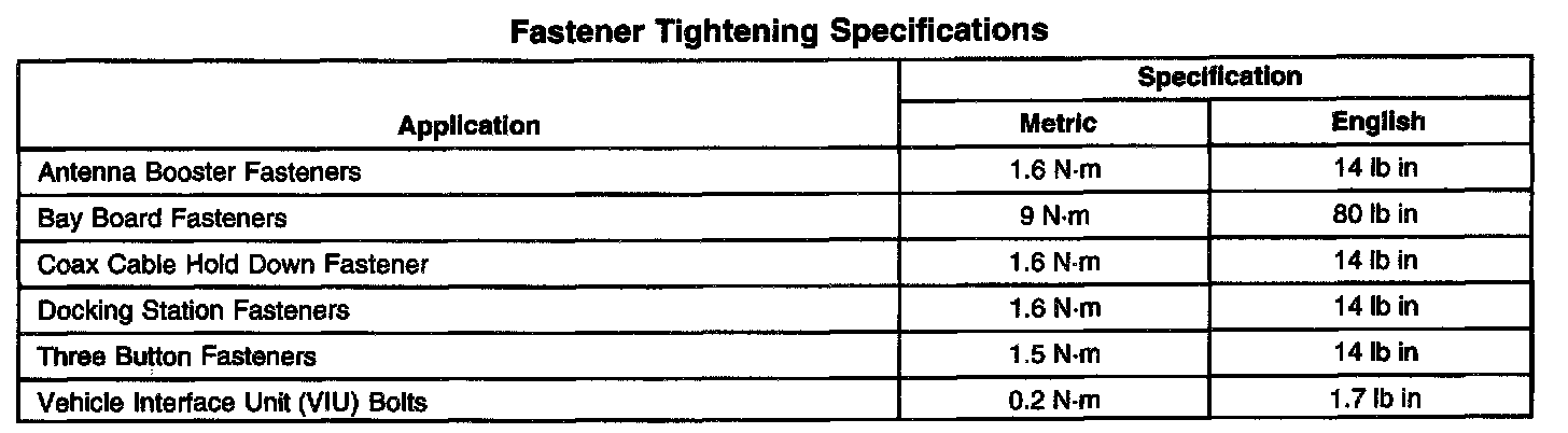 Fastener Tightening Specifications:
